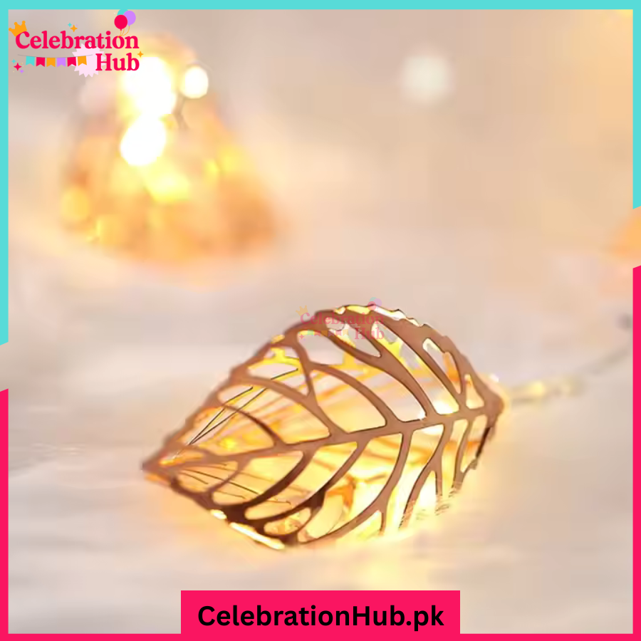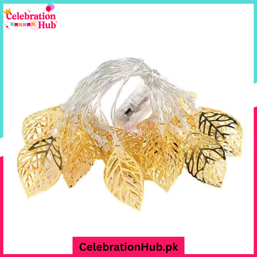 Bring nature-inspired elegance to your decor with our 20 feet plug-operated leaf fairy lights. Each string features 14 beautifully detailed metallic leaves, casting a warm, golden glow—perfect for cozy home decor, garden setups, weddings, and festive events.