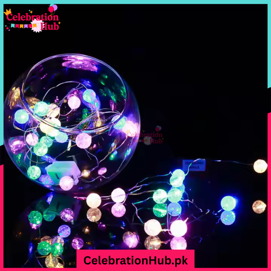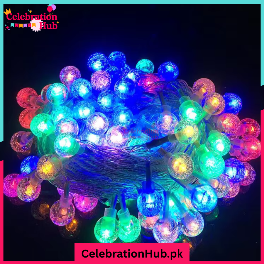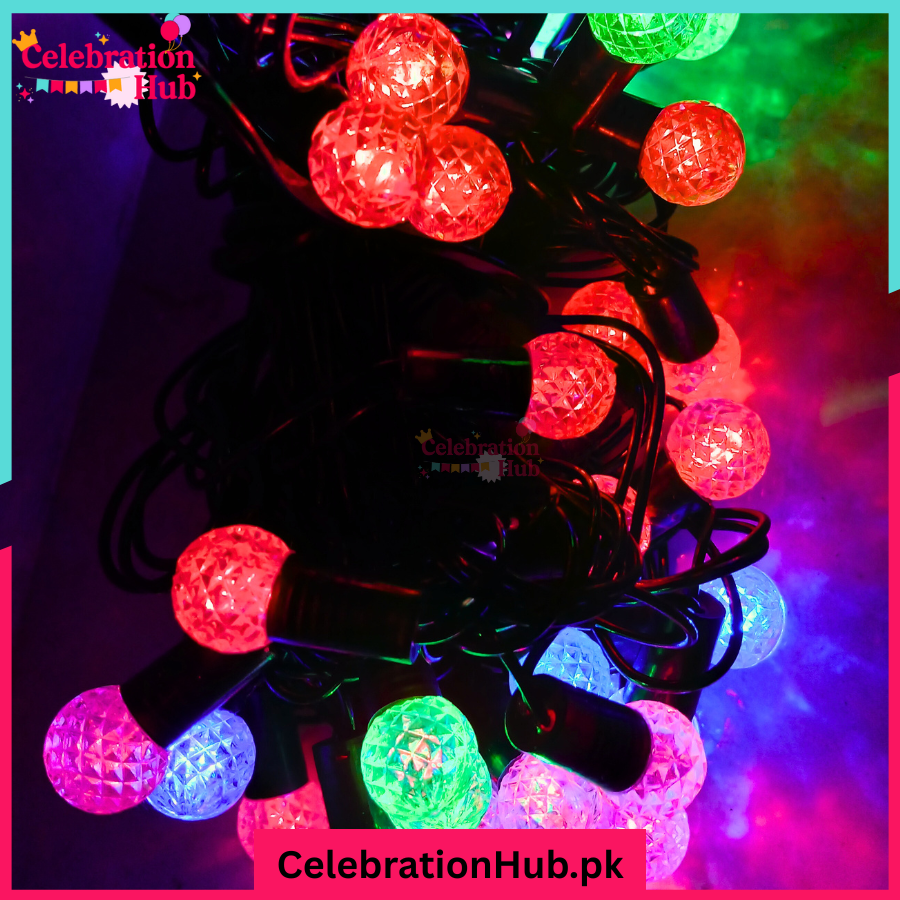 Light up your space with these 30 feet multicolor blinking ball fairy lights, featuring 40 vibrant LED balls. Designed for festive flair, these plug-operated string lights add color and charm to any celebration. Ideal for parties, weddings, holiday décor, or cozy home ambiance with a dazzling, blinking glow.
