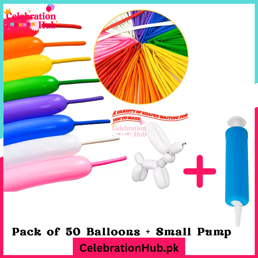 - Pack Includes: 50 long twisting balloons + 1 small balloon pump.