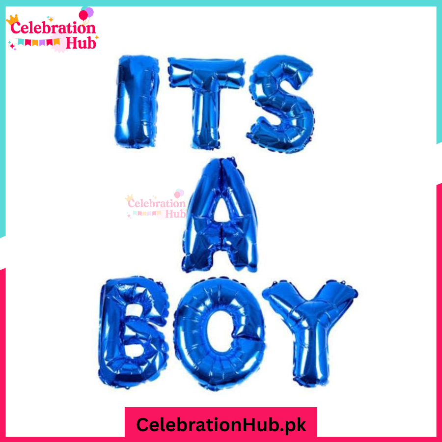 IT'S A BOY Foil Balloon Banner – 16 Inch Letters – Metallic Blue Baby Shower Decoration