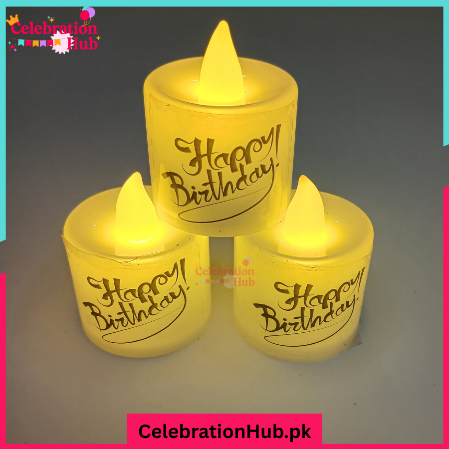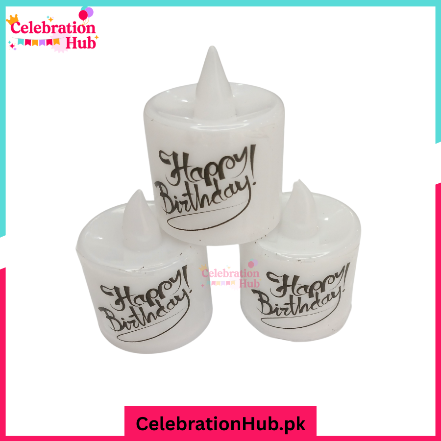 Celebrate birthdays in a stylish and safe way with this small white LED candle featuring a charming "Happy Birthday" print. With a flat base for stability, this flameless candle measures 3.5cm in height and 4.5cm in diameter, making it perfect for cakes, table centerpieces, or party decorations. Battery-operated and reusable, it's a hassle-free alternative to traditional candles—no smoke, no wax mess, just warm, flickering light to enhance your celebration.
