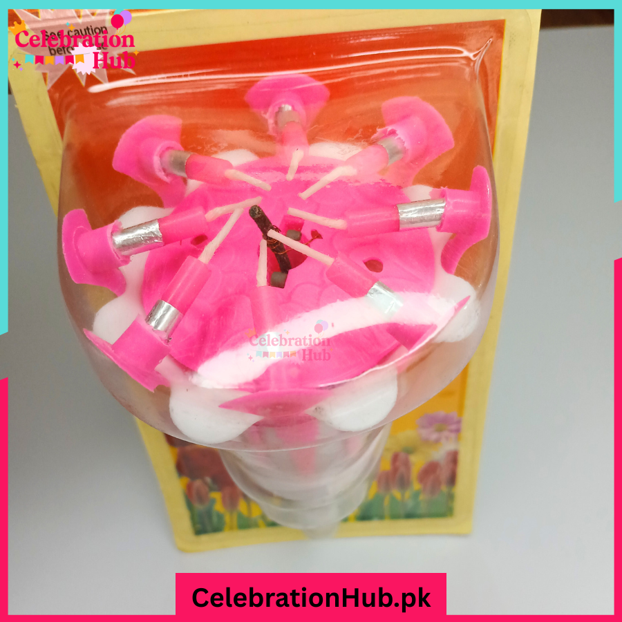 Make every celebration unforgettable with our Pink Flower Musical Birthday Candle! This unique candle opens up like a blooming flower, lights up multiple mini candles, and plays a cheerful birthday tune. A perfect cake topper to delight kids and adults alike, adding a magical touch to birthdays, anniversaries, and special events. Easy to use and safe with proper adult supervision.