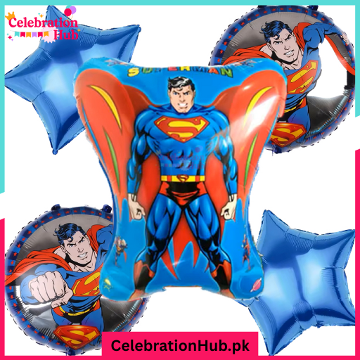Superman Foil Balloon Set – 5 Pieces – Superhero Birthday Party Decoration